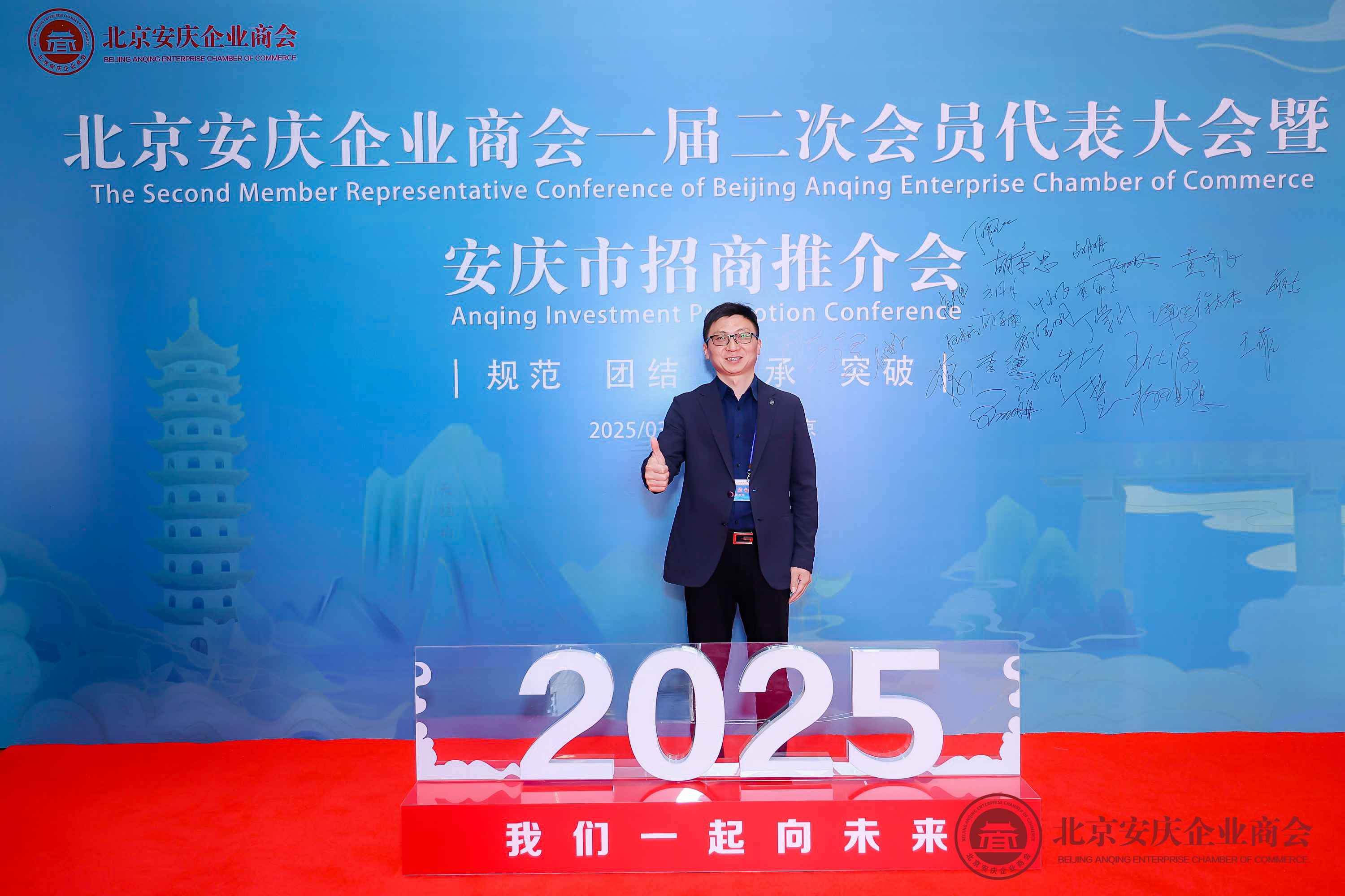 01 躬耕不輟結碩果 砥礪深耕啟新篇 3 月 23 日,[北京安慶企業(yè)商會一屆二次會員代表大會暨安慶市招商推介會]在[安慶之窗·皖江宴]隆重召開。經(jīng)大會全體成員表決通過,我司董事長[胡來勝先生]正式當選為[北京安慶企業(yè)商會]副會長。這一殊榮不僅是對董事長個人領導力的高度認可,更是社會各界對[同州建設]綜合實