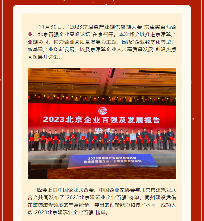 同州建設(shè)|獲評入選2023北京建筑業(yè)企業(yè)百強(qiáng)榜單