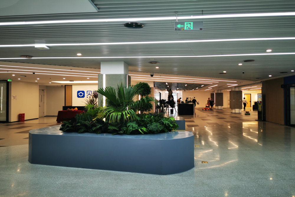本次設(shè)計(jì)方案圍繞的設(shè)計(jì)理念是:環(huán)保、綠色、高效、創(chuàng)新,充分的將企業(yè)文化融合其中。設(shè)計(jì)師在室內(nèi)多處增添環(huán)保綠色和植物元素,將人與物、人與自然相互交融,一抹抹的綠意是一轉(zhuǎn)眼的驚喜,也是工作上的舒緩,在享受舒適的辦公環(huán)境中,充分感受自然的美