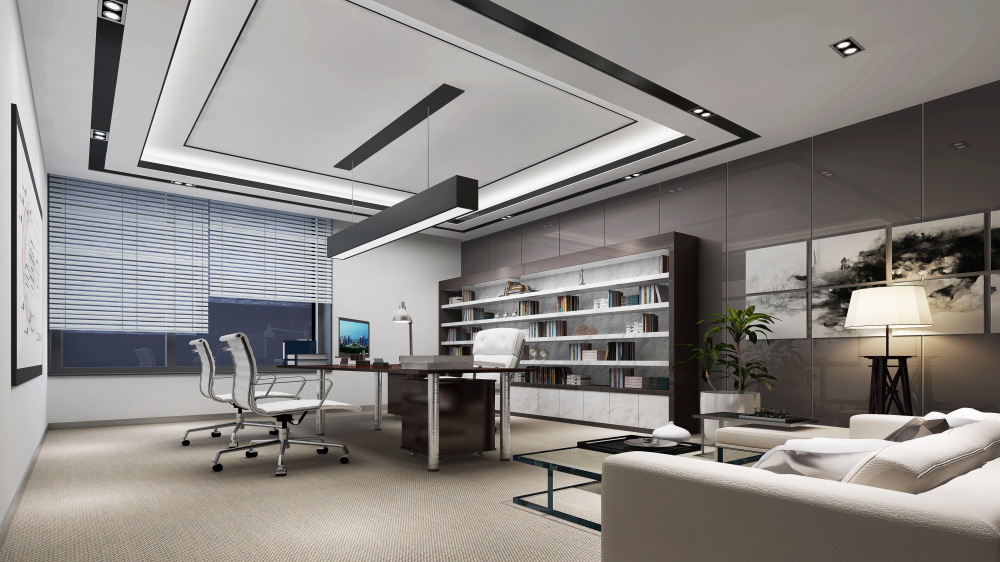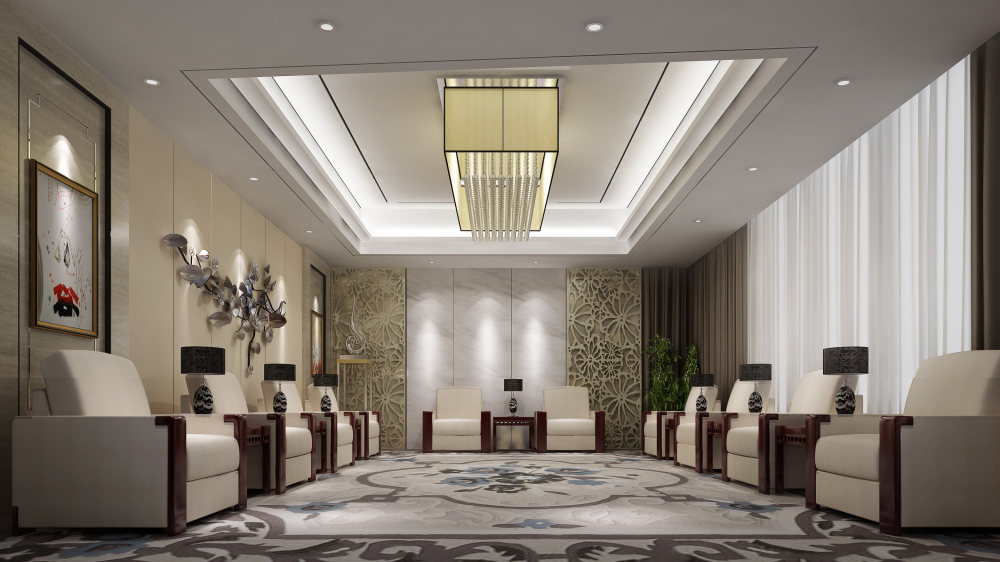 整個房間都是采用的深色渲染,基本上沒有暖色調(diào)出現(xiàn),除了一些裝飾品。整個空間的設(shè)計使整個空間更加宏偉、氣派,沒有使用吊燈來點綴,只是墻上掛了一副雅致的藝術(shù)掛畫,舒適的沙發(fā)座椅肯定是選擇的最好的,最沉穩(wěn)的顏色,讓整個空間環(huán)境表現(xiàn)出富麗的氣氛。